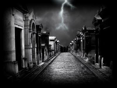 As the last traces of orange tinged the skyline, the shadows cast by the crypts around them grew. The Patches of gray that in early evening had circled the monuments like little skirts now spread like spilled blood, staining the grass and the stone walkways, tinting the newest of the marble monuments in a slow, inexorable creep of darkness that silenced all sound, except for the occasional hoot of an owl, and the noises of discomfort that they made themselves as they waited for a man with a gun. A man with a gun, and they suspected, a bag in which to carry away the bones of someone long since dead.